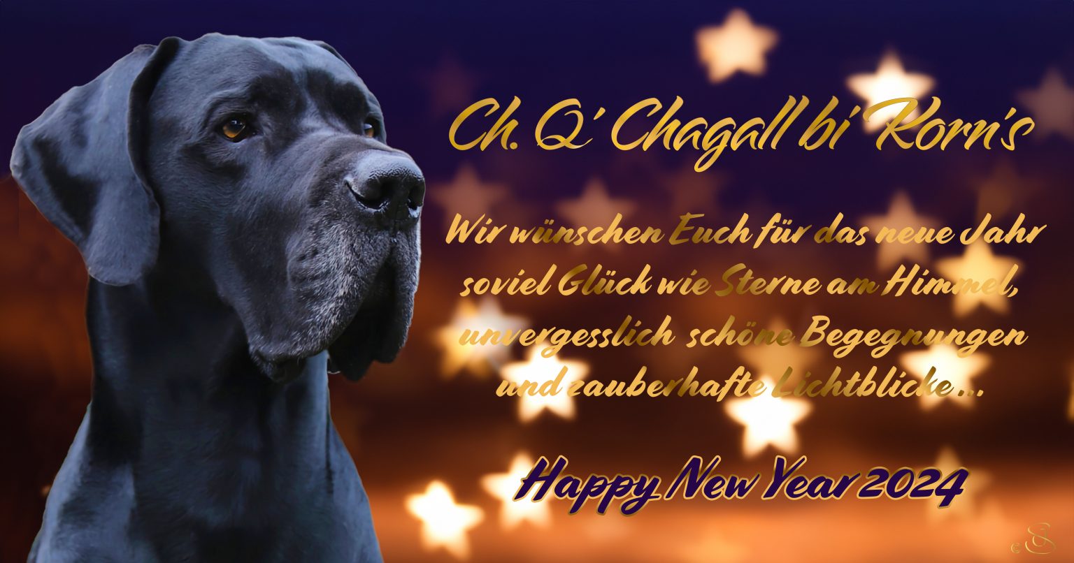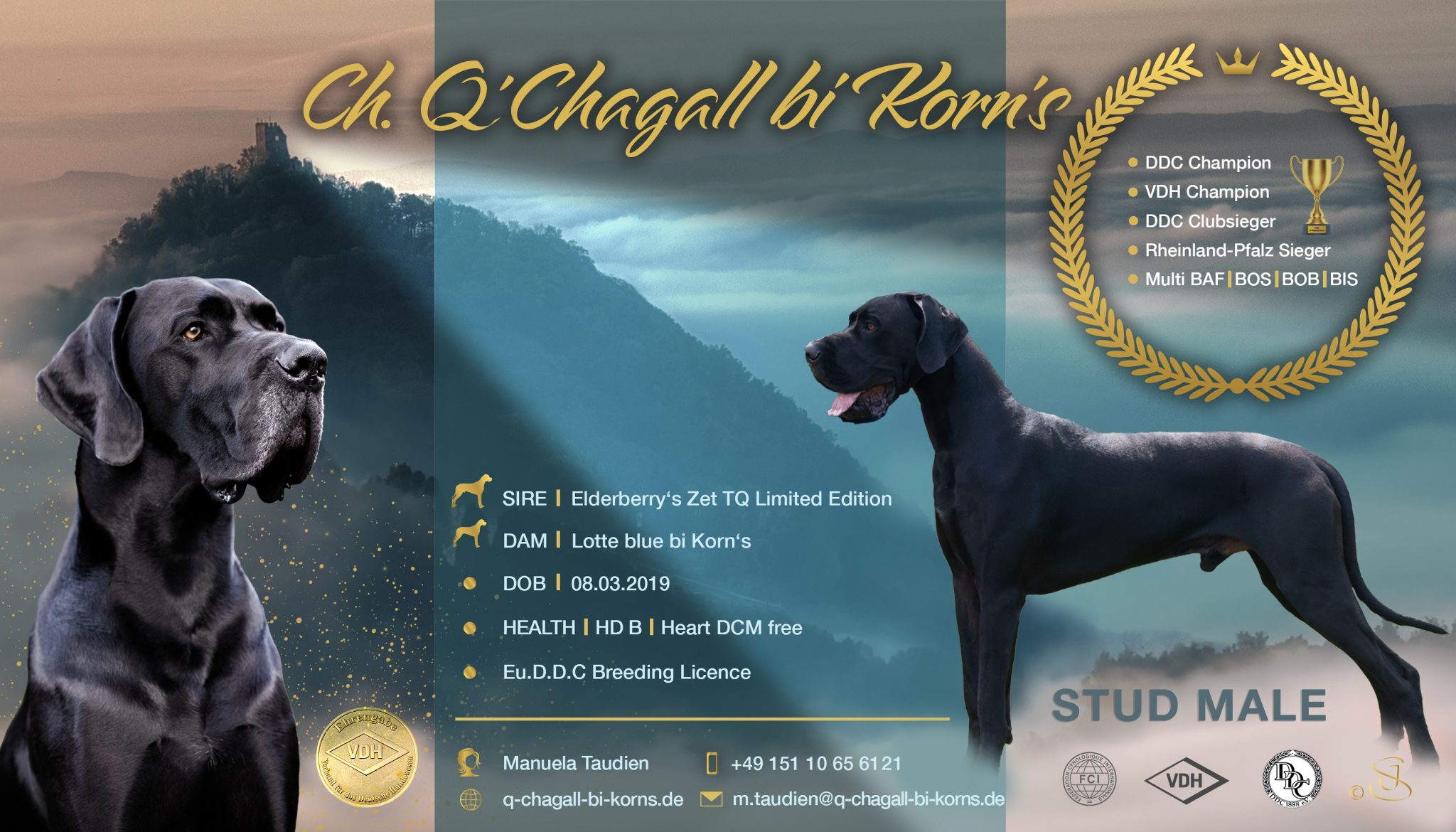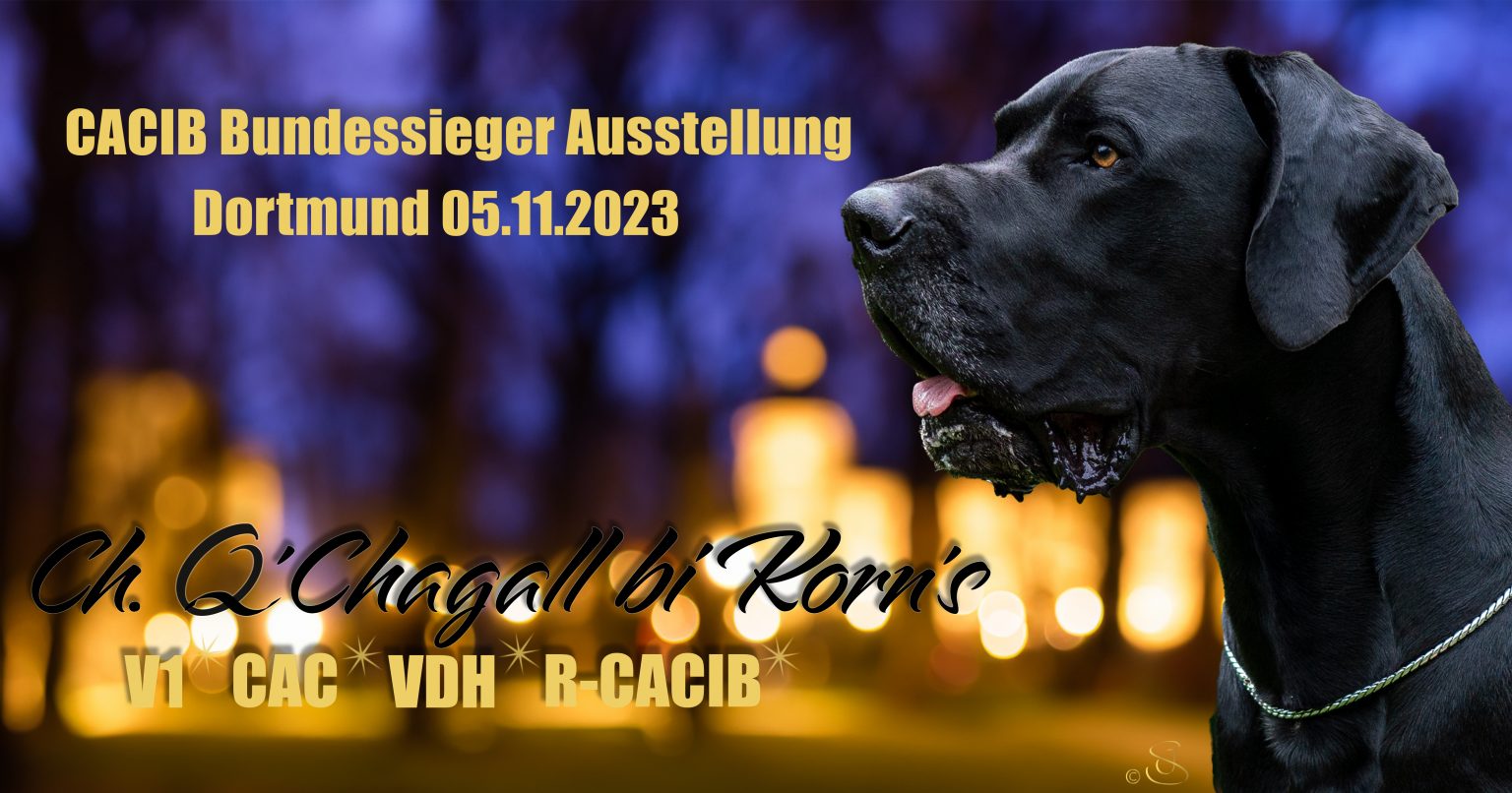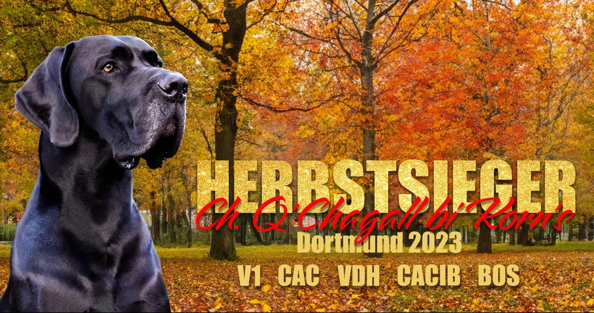 Gesundheitsuntersuchung Gentest: Ichthyose (Faltendoggensyndrom) Testergebnis: Genotyp N/N - Q'Chagall bi Korn's ist kein Träger von Ichthyose CACIB Bundessieger Ausstellung Dortmund 2023 V1 | CAC | VDH | R-CACIB CACIB Herbstsieger Ausstellung Dortmund 2023 V1 | CAC | VDH | CACIB | BOS | "HERBSTSIEGER" Eu.D.D.C. Zuchtzulassung Zuchtzulassung am 19.08.2023 erfolgreich bestanden